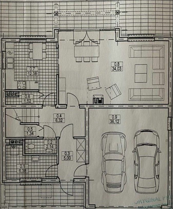 Parter: powierzchnia netto 105,23 m2 w tym garaż 36,12 m2